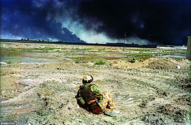सद्दाम हुसेनका सैनिकको आक्रमणपछि घाइते भएका आफ्ना साथीको उद्धार गर्दै अमेरिकी सेना ।